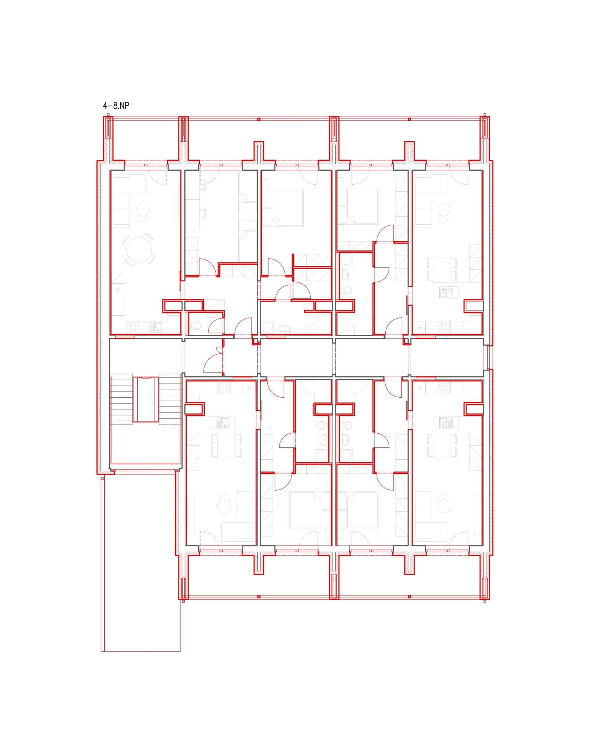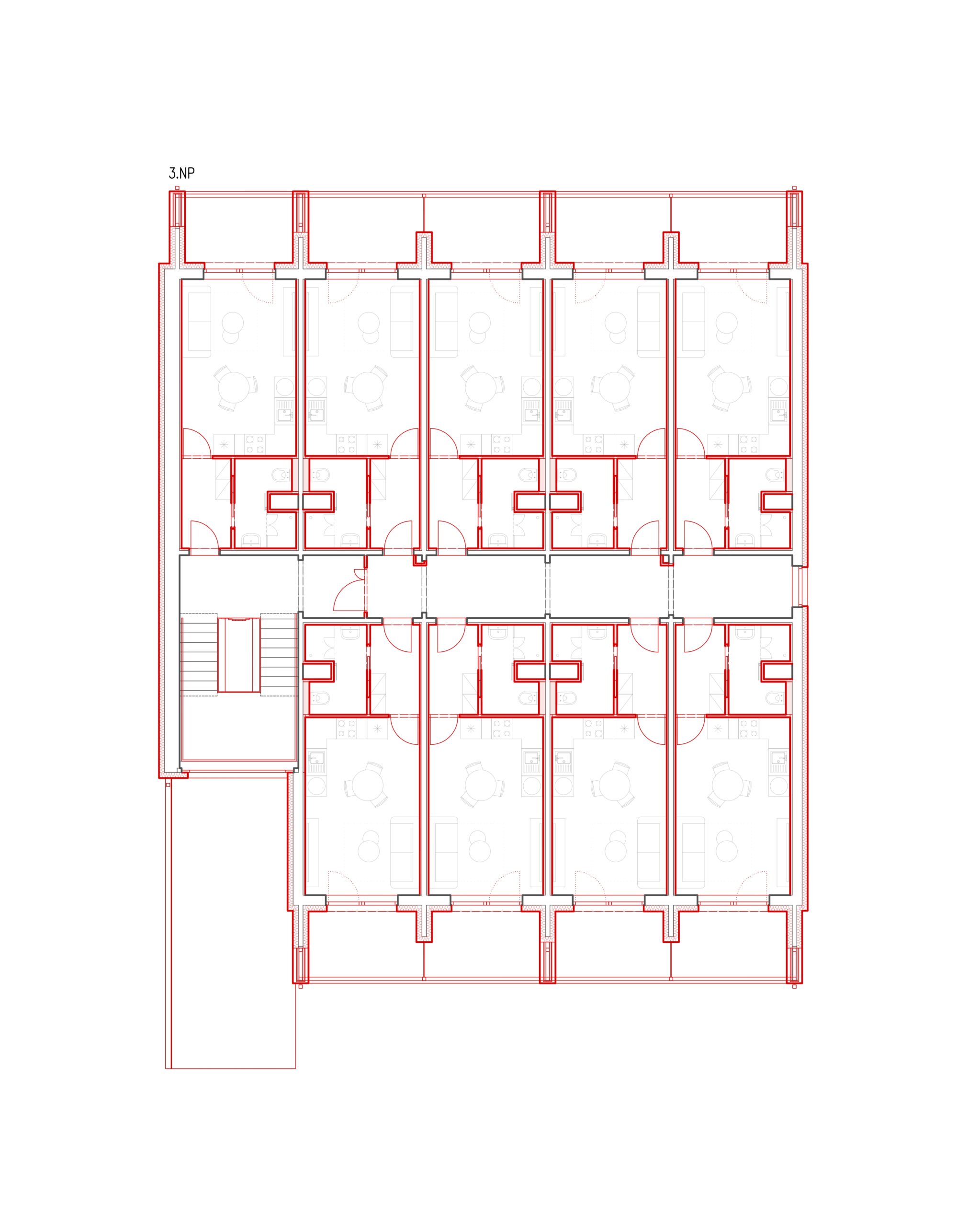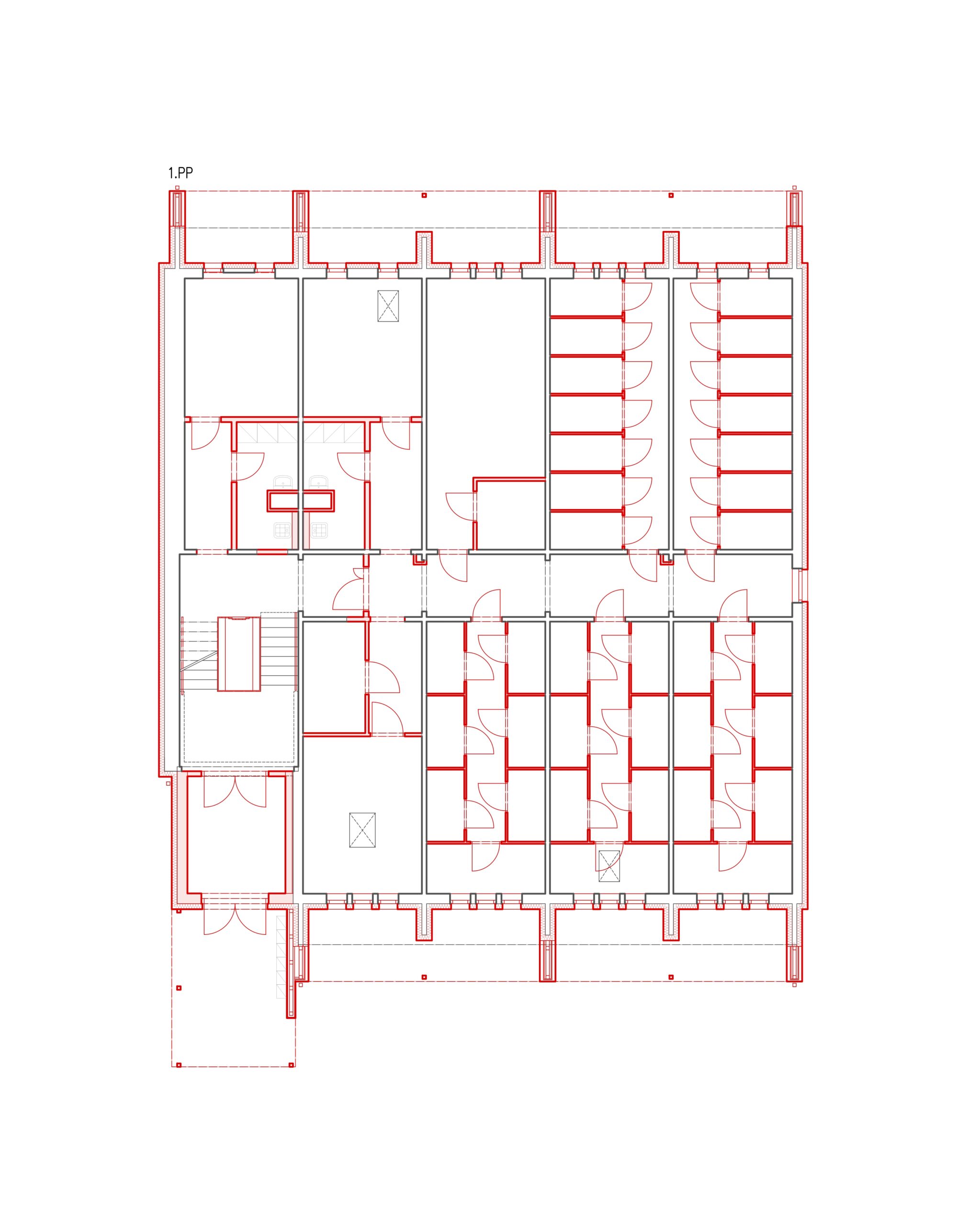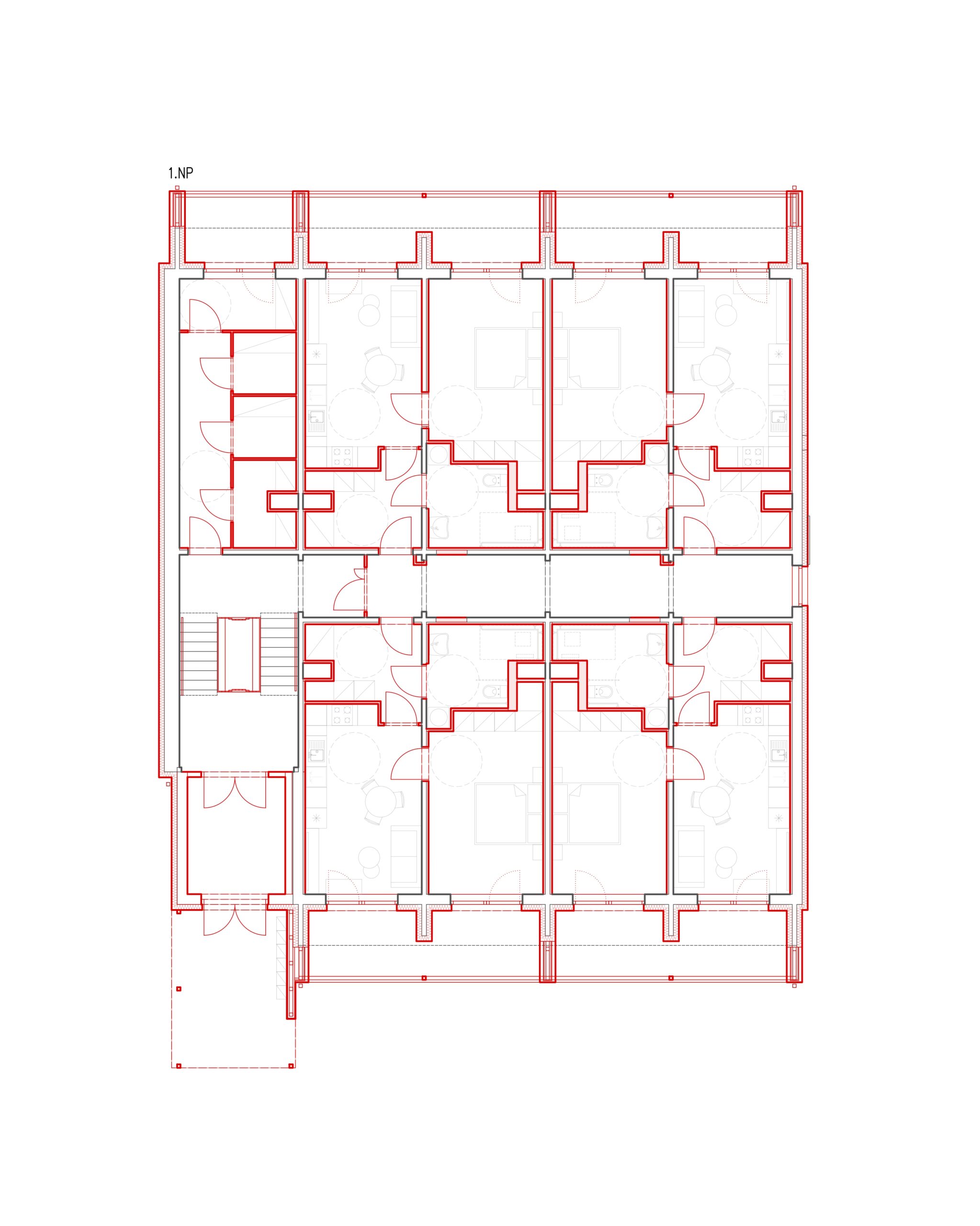 Dispoziční řešení je navrženo tak, aby maximálně využilo plochu pozemku a zároveň vytvořilo příjemné prostředí pro budoucí obyvatele. V přízemí se nachází zázemí domu a technických prostor, ve vyšších podlažích pak bytové jednotky s dostatečným přísunem denního světla. Vybrané byty jsou doplněny o lodžie, které zvyšují kvalitu bydlení a umožňují propojení s exteriérem.